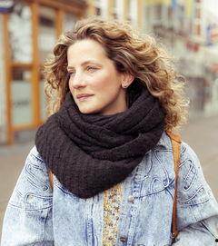 2. 约会围法:将围巾对折,两端对齐,从下往上围在脖子上,两端交叉后,将一端穿过另一端形成的环,然后从背后斜挎在肩上,优雅迷人。