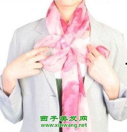 2. 蝴蝶结围法:将围巾对折,两端对齐,从下往上围在脖子上,两端交叉后,将一端穿过另一端形成的环,拉紧形成蝴蝶结。